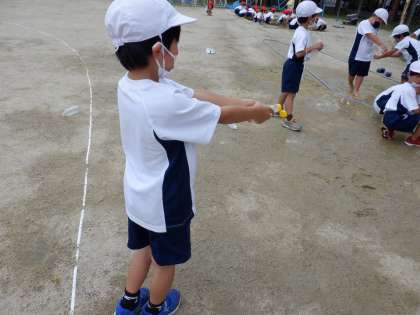 誰が一番遠くまで水を飛ばすことができるか競争したり,