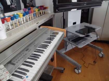 そして,子どもたちの音楽表現活動を,撮影したり,録音したりできるようにしました。大型画面で見ると,さらに楽しいですよ。