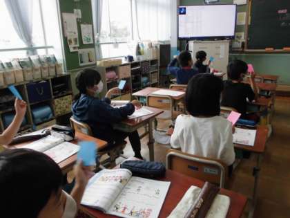 子どもたちは,図形楽譜と合わせながら,せんりつのとくちょうをすぐにとらえました。