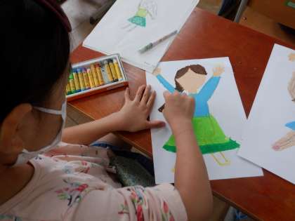 クレパスを上手に使って丁寧に塗ることも頑張っています。