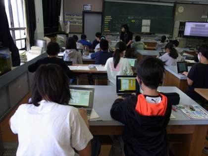 コンピューターのグラフを見て,自分の考えをまとめて発表