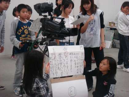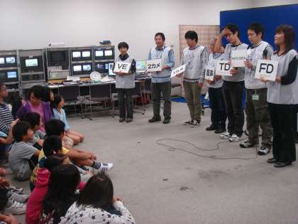 5年生は,NHK放送体験をしました。本格的なスタジオ撮影を体験しました。1カメラ,2カメラ,PD,FD,TD,音声,カンぺ係などプロの方に教えてもらって体験しました。みんなで仕上げた番組を最後に見ると,自分たちで作った喜びがありました。