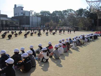 お兄さん,お姉さんにパワーをもらい,意欲を高めている1年生でした。