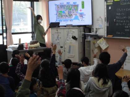 担当の先生から動物園ラリーのやり方の説明を聞き,グループのめあてを決めたり,回る順を話し合ったりしました。