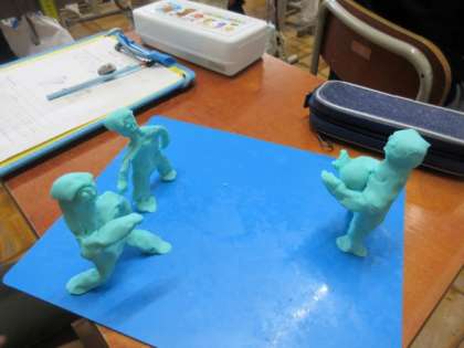 粘土をこねて,丸めて,ひねり出して,いろいろな技をつかいながら,自分たちの思い出を表すことができました!