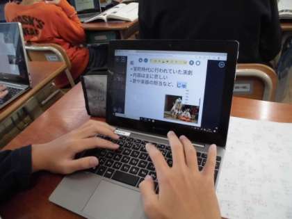 それぞれの歴史やおもしろさを,教科書を参考に,タブレットでまとめていきます。