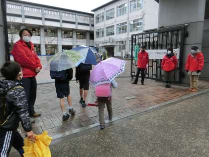 あいにくの雨模様でしたが,「おはようございます」の元気な声がたくさん聞かれ,空の薄暗さを吹き飛ばすようでした。