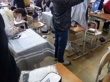 裁縫の学習が始まりました。エプロンを手縫いで作ります。