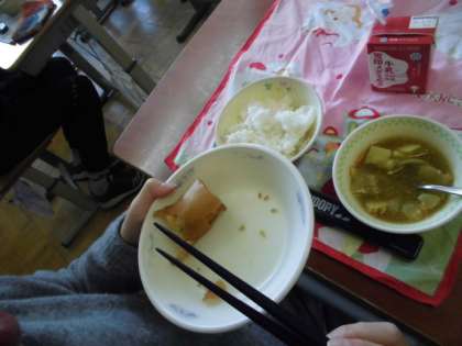 もちろん,給食調理員さんの手作り。実に,650本以上巻いてくださったそうです。