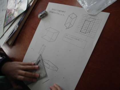コツが分かると,いろいろな立方体や直方体の見取図が,おもしろいほど,どんどんかけるようになりました。
