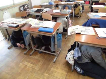 6年生ともなると,体も大きくなり,机の下にもぐるのもギュウギュウでしたが,落ち着いて避難行動をとることができていました。