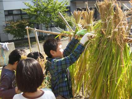 次は、脱穀をして、みんなでお米を食べるパーティを