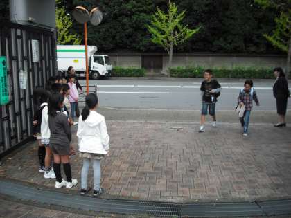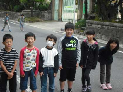 曇り空を吹き飛ばすような「おはようございます」の声と,笑顔がすてきな3年生です。