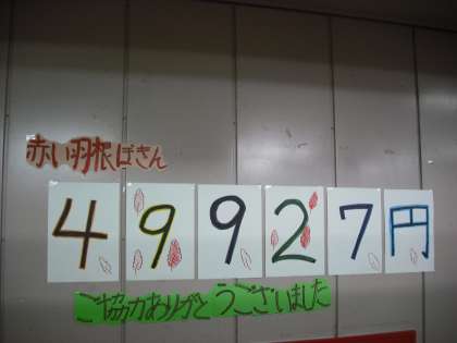 共同募金の集計ができました。今年もたくさんの優しい心が集まりました。ご協力いただいた皆さん,どうもありがとうございました。