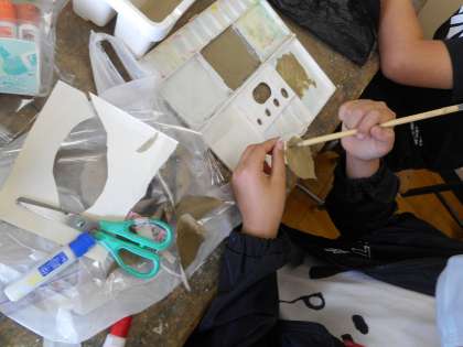 自然の中に落ちている葉や枝,石などを拾ってきて,本物そっくりに作り上げます。