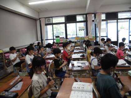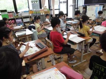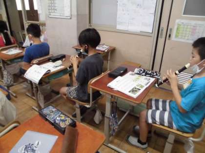リコーダーのやさしく美しい音を出すために,息の入れ方を工夫して,がんばっています。