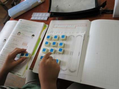 数図ブロックで確かめたり、頭で計算したり、みんなよくがんばっています。