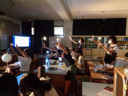 また,太陽と月と地球が一直線になった場合のみに起きる,月食や日食も実施に作って仕組みを確認しました。