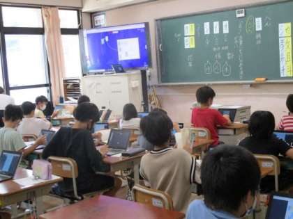 授業では、漢字はへんとつくりで構成されていることを、タブレットを使って学習しました。