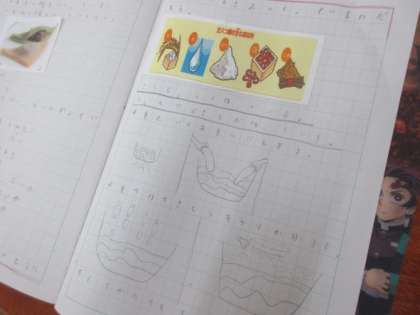 原料からどのように作られるのか、予想を絵や文にかきました。