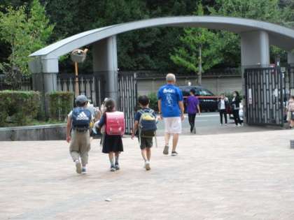 笑顔で下校する子どもたち。