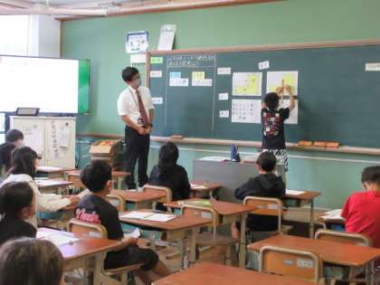 今日は、先生たちの研修会で、たくさんの教職員が4年生の子どもたちの学びを見守りました。