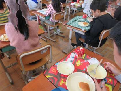クリームシチューのルゥは、もちろん給食調理員さんの手作りです。