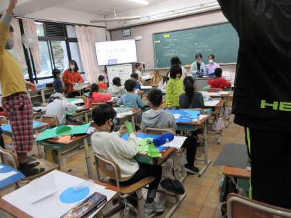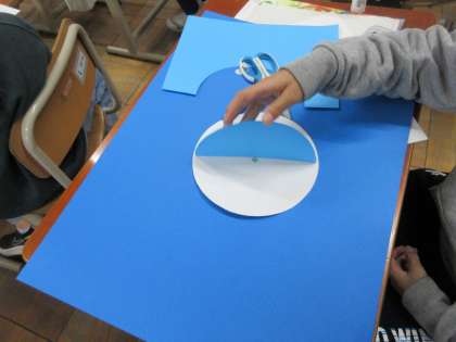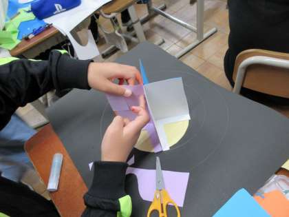 くるくる回る仕組みを作って、自分の表したい物を制作します。