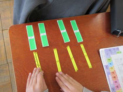 数え棒のよいところは、十進位取りにしたがって、位ごとに考えやすいところです。