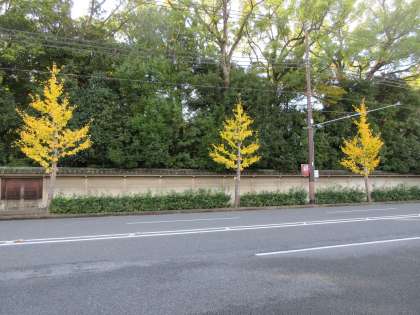 学校の前の丸太町通りのイチョウが、いつの間にか鮮やかな黄色になっています。