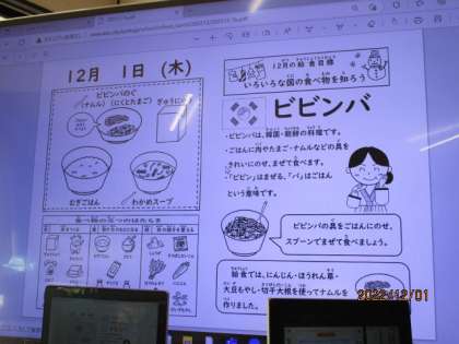 今日の献立は、「ビビンバ 肉と卵」「ビビンバ ナムル」「わかめスープ」「麦ご飯」「牛乳」です。