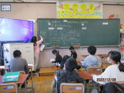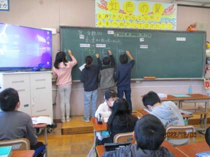 これまでに、わり算を分数で表すことを学習しているので、その逆、分数をわり算の式に表していくと・・・。