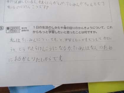 3年生から「保健」の学習が始まっています。