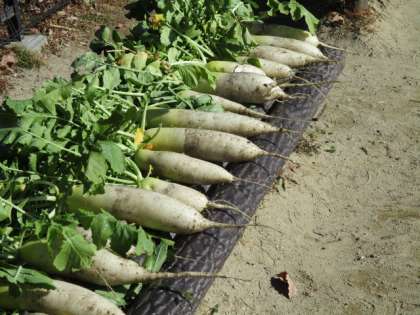 冬の間に水やりをしていました大根を、収穫しました。無農薬で育てたので鳥などにつつかれたりしましたが、立派な大根が出来ました。みんな大満足でした。