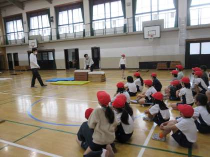 台上前転は、はじめは見るだけにしようと思っていた人も、友達ががんばる姿にインスパイアされて、最後は全員が挑戦しました。