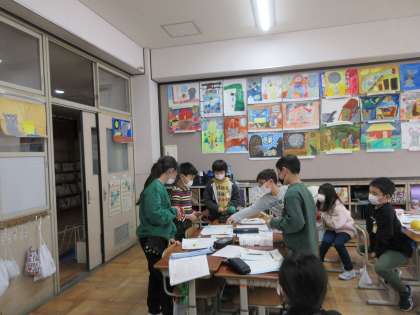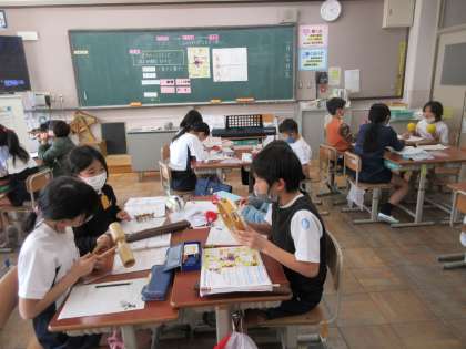 楽器のいろいろな鳴らし方、演奏のしかたを試しながら、音楽の設計図をグループで作っています。