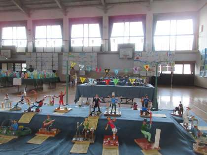 体育館に、各学年、学級、部活動などの作品を展示しています。