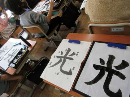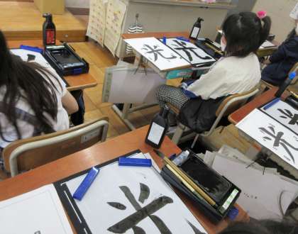 毛筆学習最終回、学習の約束や、学習の流れがしっかりと身に付きました。