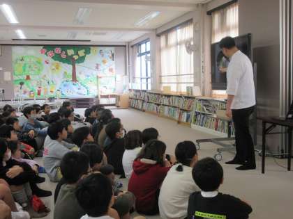 だしの良さや京料理の歴史などについてお話いただきました。子どもたちも興味深々で、来週からの調理実習を楽しみにしていました。