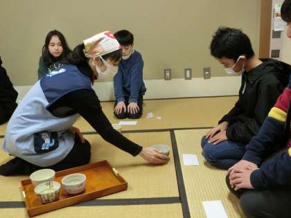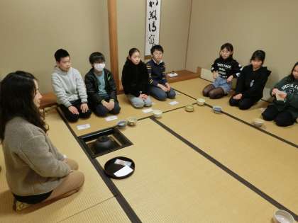 はじめは少し緊張気味の子どもたちでしたが、お作法に慣れてくると、凛とした雰囲気を味わいながら、静かに茶道の活動を楽しむことができるようになりました。活動を終えて教室に戻る時も、和室での落ち着いた雰囲気の余韻を感じながら、静かに歩いている様子でした。