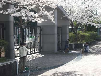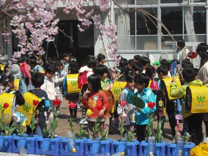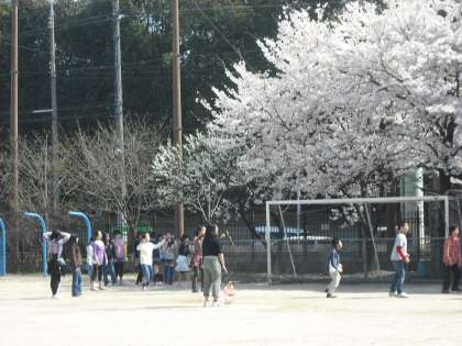 今年は遅咲きだった校内の桜も,今満開を迎えています。美しい桜の下で,元気に遊んだり,掃除時間には花びらを丁寧に集めたりする姿が見られます。美しい景色のもとで,新学期,子どもたちのいい顔がほころんでいます。