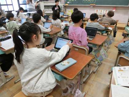 3年生の算数科ではわり算の学習が始まっています。こちらも、繰り返して練習。しっかり計算できた子は、デジタルドリルを使って、さらに練習を重ねていきます。どの子も真剣そのもの。この先のさまざまな計算の土台になる学習を、丁寧に進めています。
