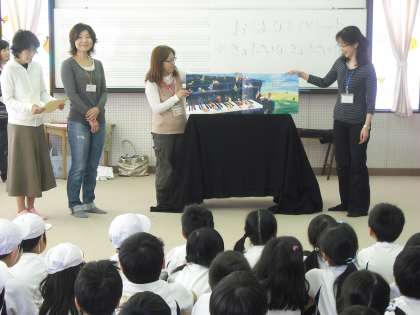 今年初めてのお話パレットがあり,今日は,1年生に大型絵本を読んでいただきました。子どもたちは,「あったとさ,あったとさ・・」と言いながら,お話の世界に引き込まれていました。