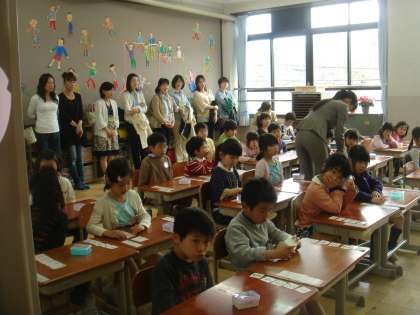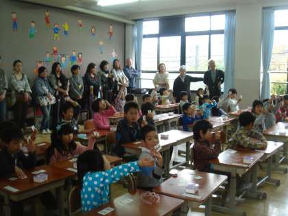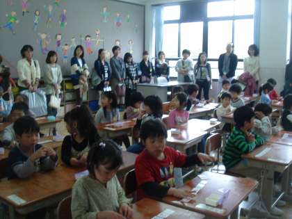 入学して初めての参観がありました。おうちの方に見てもらえるのはうれしいけれど,5時間目の授業なので,少し疲れ気味な様子でした。算数の5までの数の学習でした。保護者の多くの方においでいただきました。