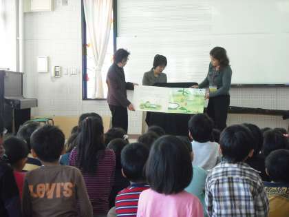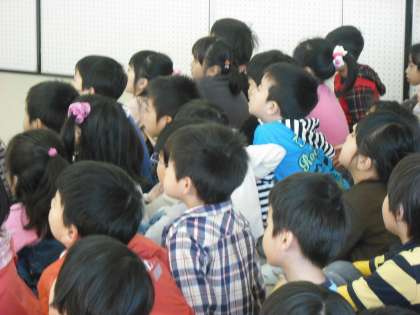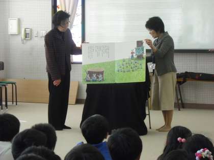 「にゃあご」や「そらまめくん」は子どもたちの大好きなお話です。目を輝かせて,聞き入っていました。