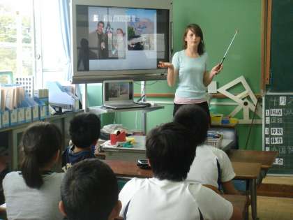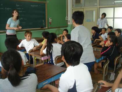 5年生になって初めて外国語活動をALTの先生に教えてもらいました。ネイチャー英語を耳にしながら楽しく学習しました。6年生は,担任の先生とのかけ合いをしながら授業が進んでいました。