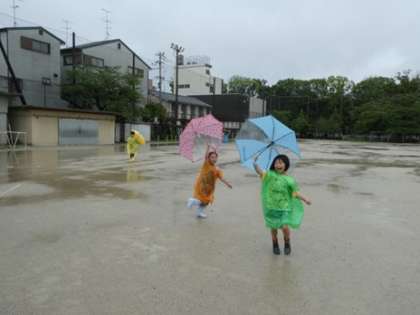 先週から手作りのかっぱを準備して雨の日探検隊になることを楽しみにしていた子どもたち。今日ついに雨の日探検隊でお散歩に出ることができました。手作りのかっぱを着て大喜び!雨の日のお散歩を存分に楽しんでいました。