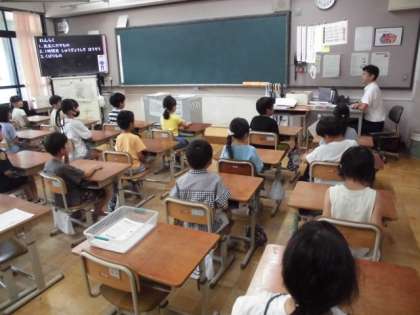 2時間目からは、学級活動を行い、通知票を担任から受け取ったり、明日から始まる夏休みの生活や学習について確認したりする時間となりました。また、転校等のため1学期でお別れとなる友達との最後の時間を楽しく過ごしている学級もありました。