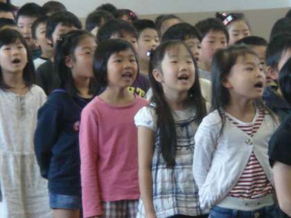 朝の時間を使って詩の暗唱をしています。声をしっかり出して詩を暗唱します。今日の錦林タイムは,各学級・学年で取り組んでいることの発表をしました。一年間いろんな詩や文章を暗唱して声を鍛えたいと思います。錦林タイムの感想交流もだんだんいい形になってきました。発表する側だけでなく,聞く側も育つ時間です。