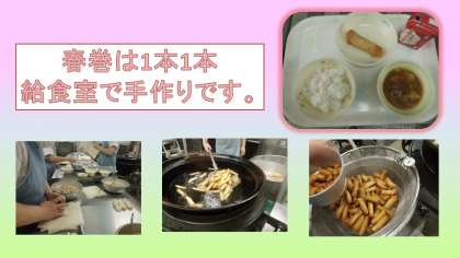 カレーあんかけごはんも春巻も1年に1回の献立です。